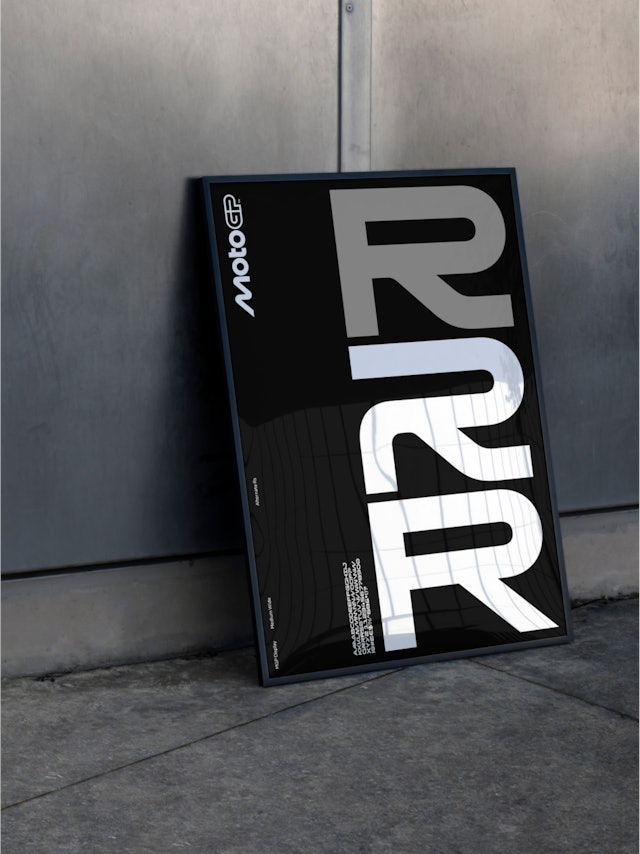 The new custom MotoGP typeface (created in collaboration with F37®) takes inspiration from the logo and features a set of alternate characters that inject energy and movement. The variable typeface provides maximum flexibility across headlines and text, working particularly well in motion as a dynamic brand element.