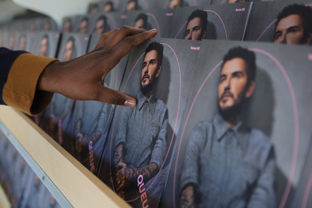 Queue is a talent-first publication that strives to give each actor, director, artist, craftsperson, film or series to have its own spotlight moment. So, each issue takes the reader on an unexpected visual journey, moving from dramatic photography to dynamic typography, from interludes of quiet elegance to graphic statements and vibrant colors. Some compositions mimic or enhance the imagery; others let the photography breathe. Every article’s design echoes the story of the Netflix original title being featured. As a result, each issue is eclectic yet somehow cohesive.