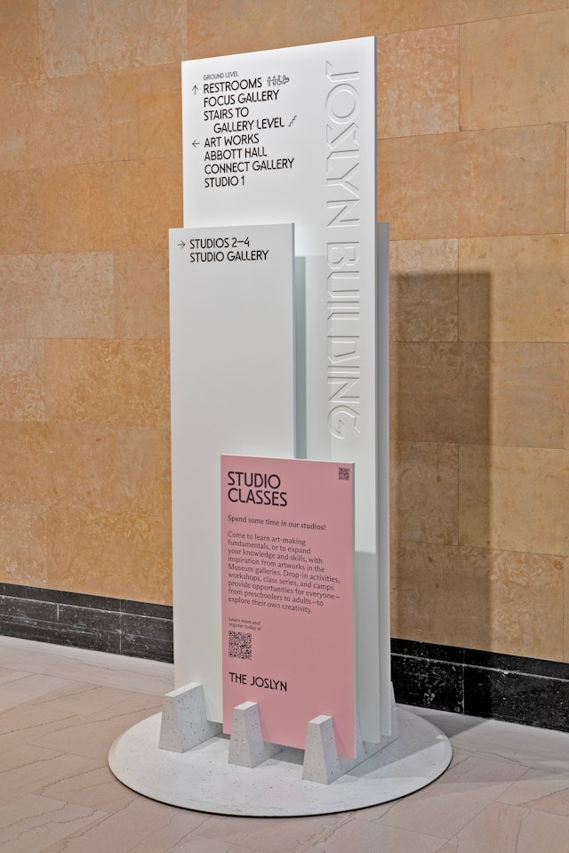 The new brand identity and typefaces are utilized in signage and wayfinding throughout the museum, in exhibition graphics, in promotional campaigns and on The Joslyn website and social media channels.