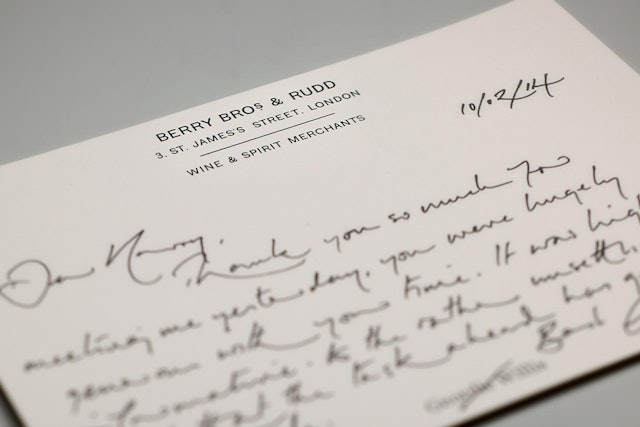 Pentagram spent days simply being with the history of this extraordinary company. In its cellars, archives and warehouses, relentlessly photographing and soaking up its spirit. Among the historic collection discovered were a series of distinctive labels that were both timeless and understated — so much the nature of the brand. The blend of typography and charming handwritten notes captured the expression of so much that is Berry Bros. & Rudd.